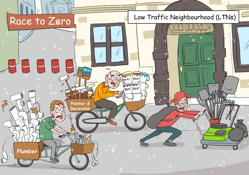 Card 2: How the drive for Net Zero is making it difficult for tradesmen to service their customers in Low Traffic Neighbourhood areas (LTNs).