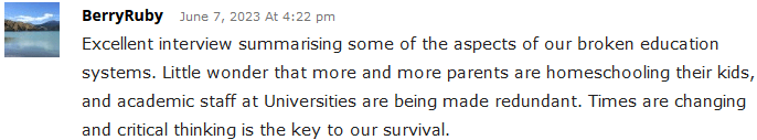 Together they discuss (50 mins) how critical thinking is intentionally being dumbed-down in our higher education institutions, and other sectors of education. Topics in the conversation include how media controls the populations through fear and coercion and how dissenting voices are suppressed, leading to skewed ideological behaviours that are dividing families, friends and colleagues, all over the globe.